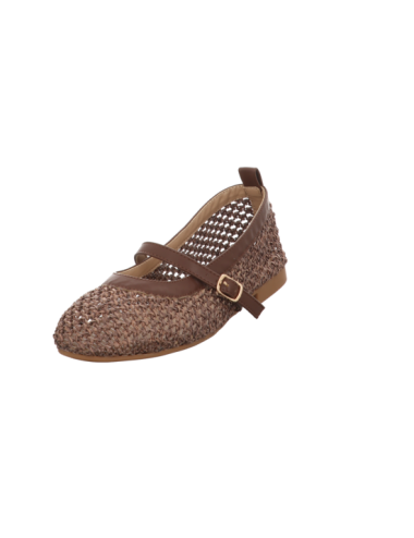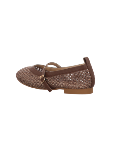 Ballerina in braunen Textil mit Gummisohle.