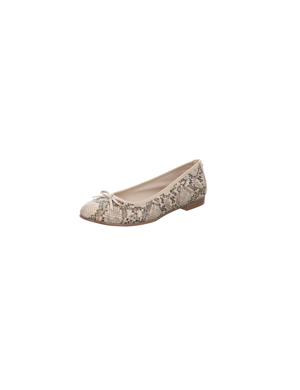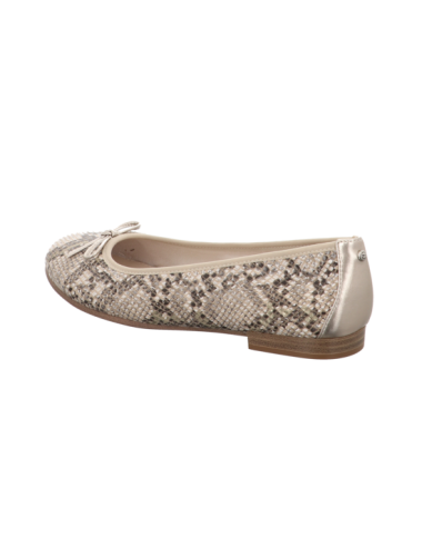 Ballerina in beige kombinierter Rauhlederoptik mit Schlangenprint und Pu - Sohle.