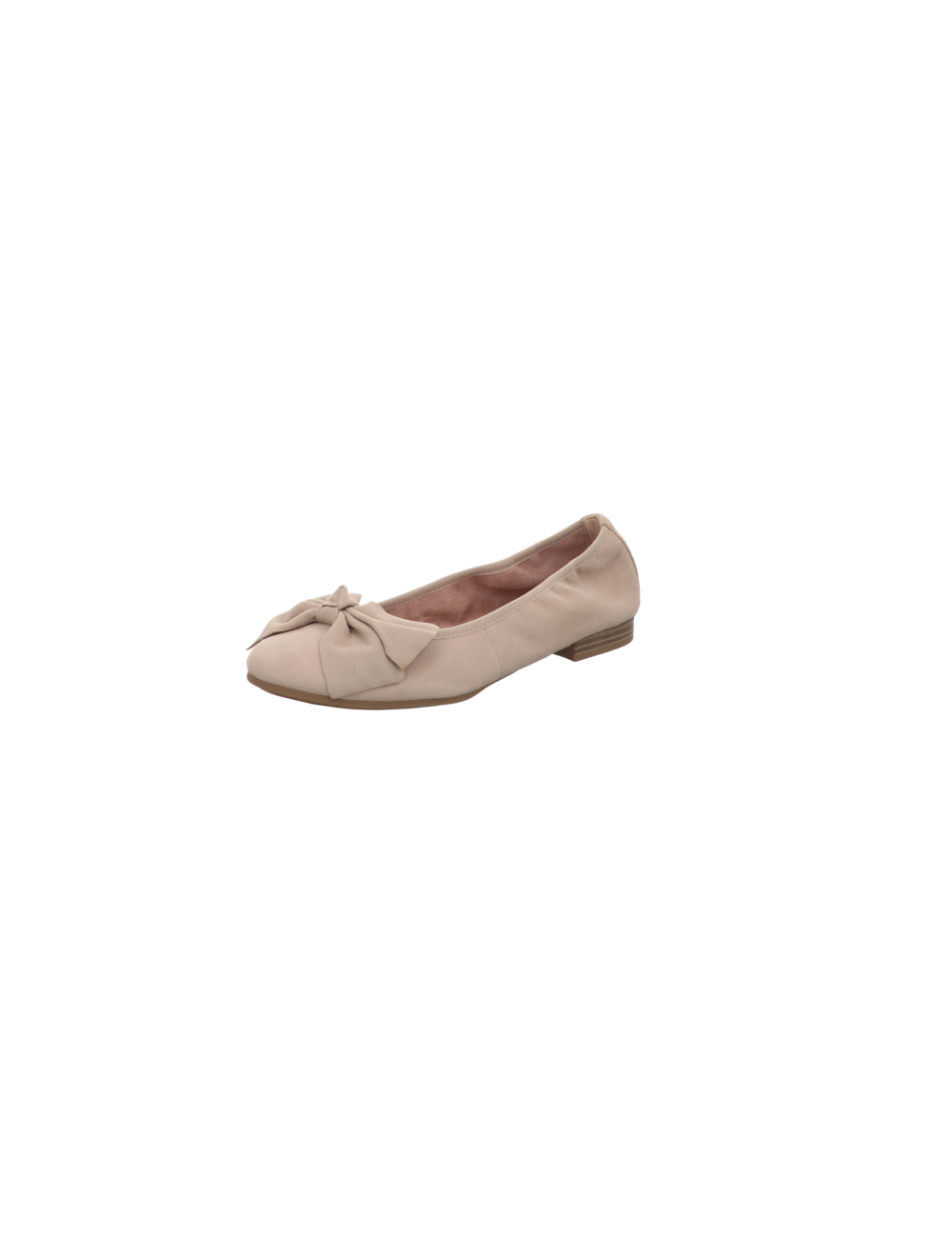 Ballerina in beigen Rauhleder mit Gummisohle.