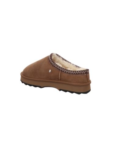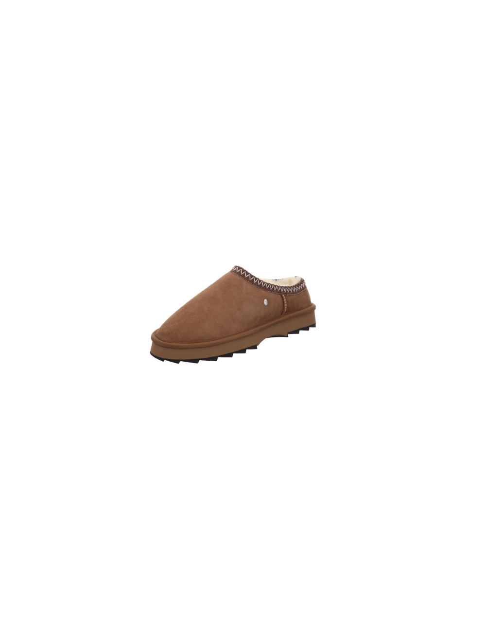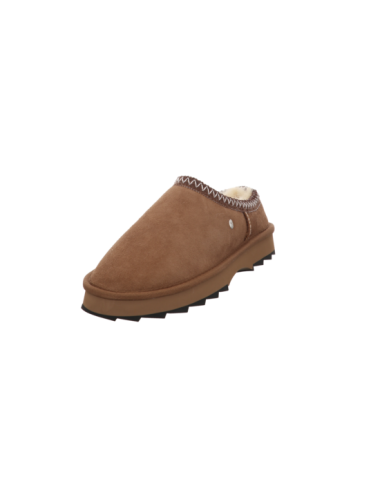Pantoffel in beigen Rauhleder mit echten Lammfell und Gummisohle.