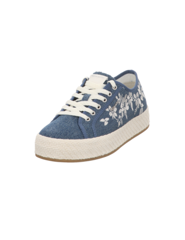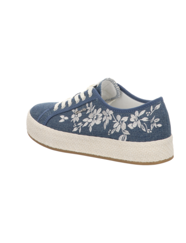 Leinenturnschuh in jeansblau mit Gummisohle.