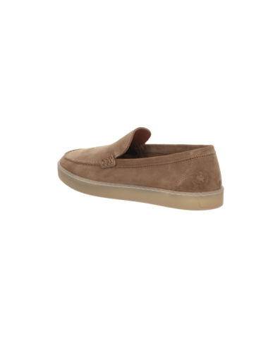 Mokassin in beigen Rauhleder mit Gummisohle.