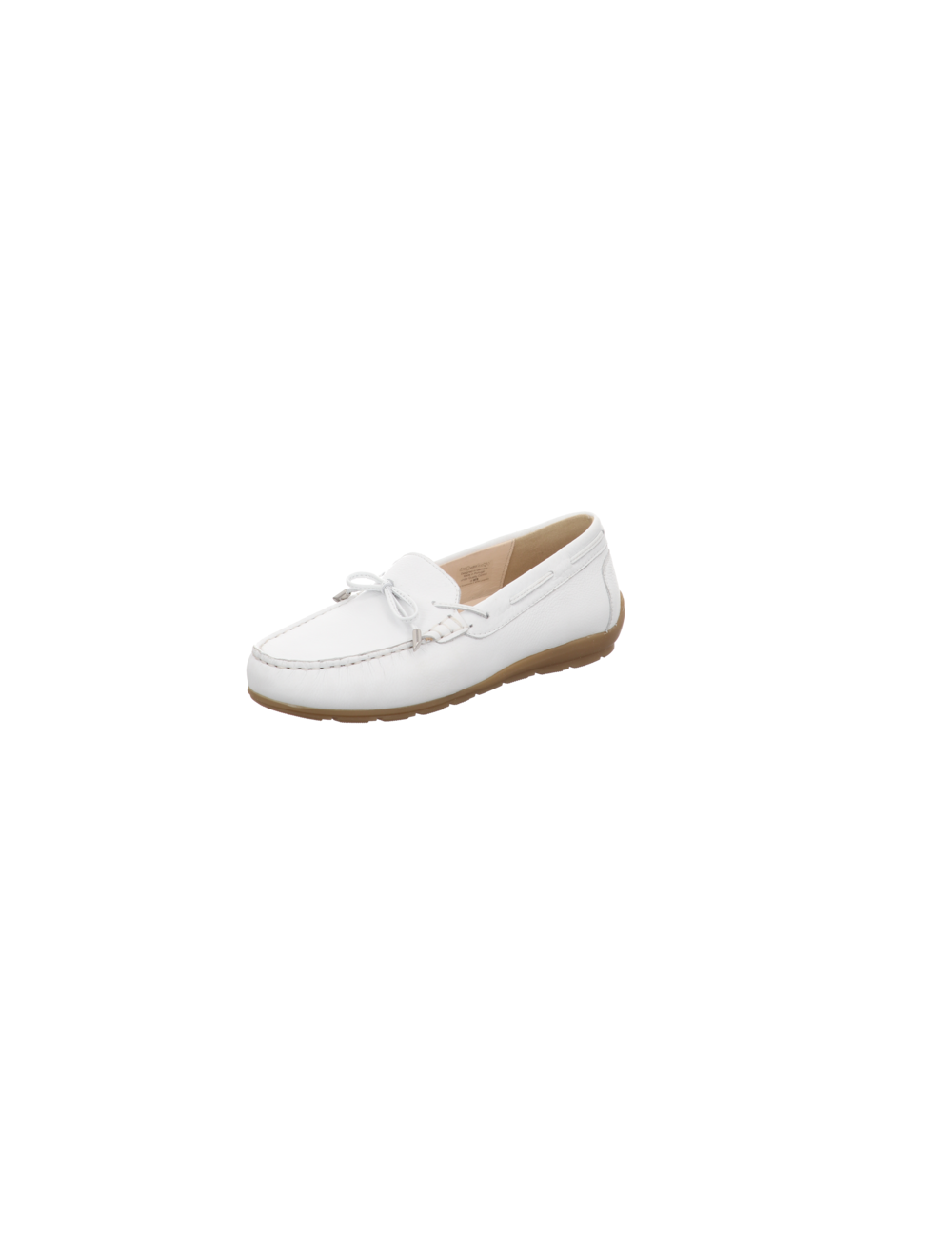 Mokassin in weissen Glattleder mit Gummisohle.