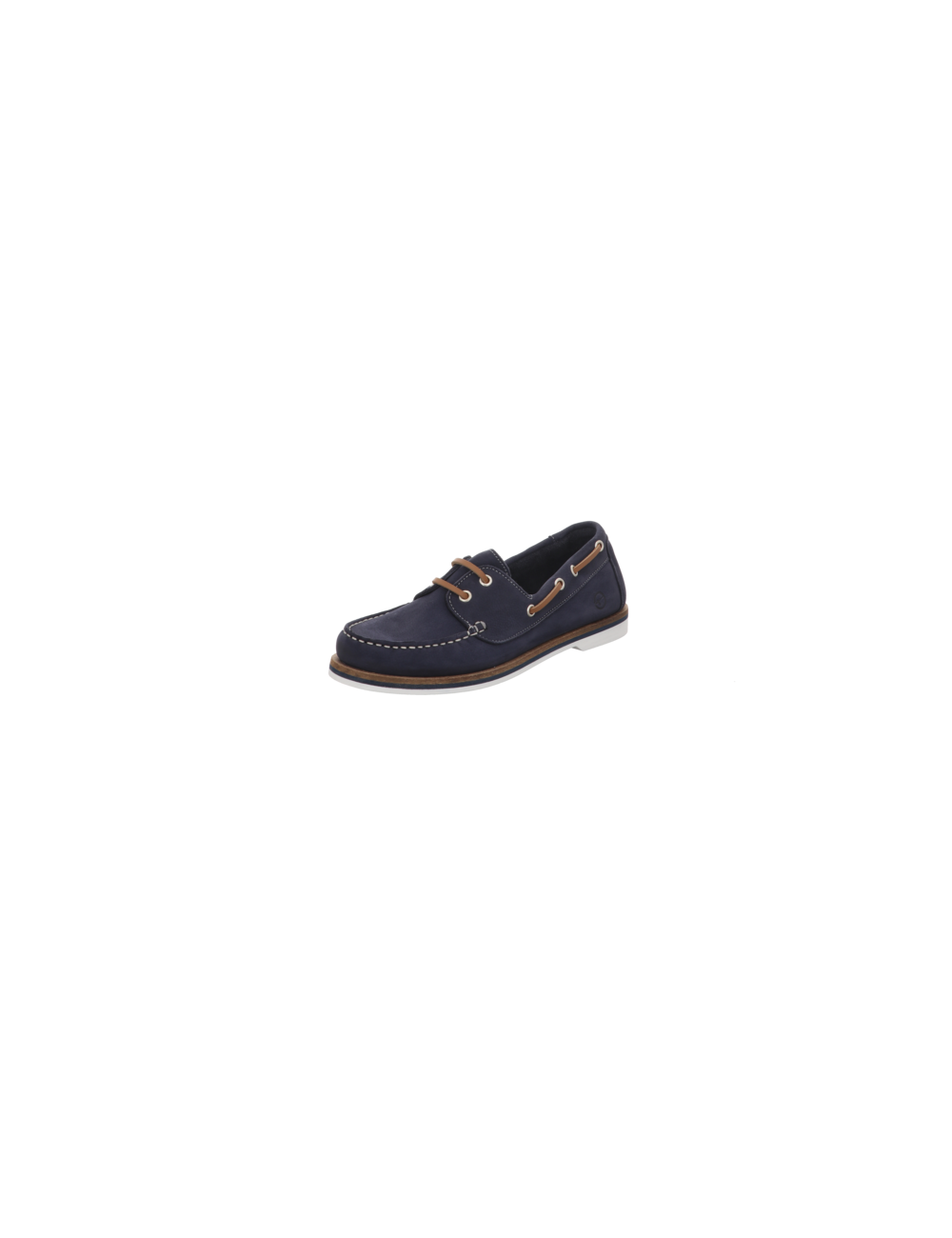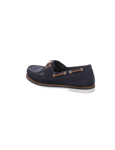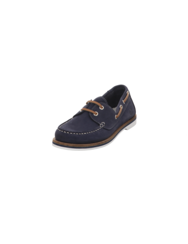 Schnürmokassin in blauen Rauhleder mit Gummisohle.