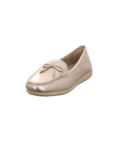 Mokassin in goldenen Glattleder mit Gummisohle.