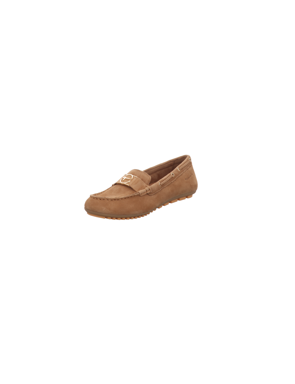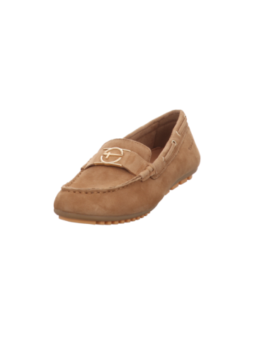Mokassin in hellbraunen Rauhleder mit Gummsohle.