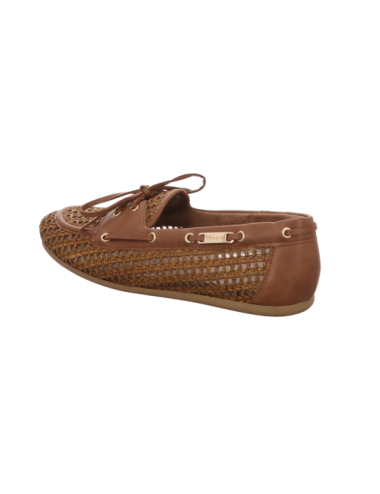 Mokassin zum schnüren in braunen Textil mit Gummisohle.