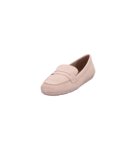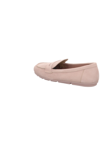 Mokassin in rosa Rauhleder mit Gummisohle.