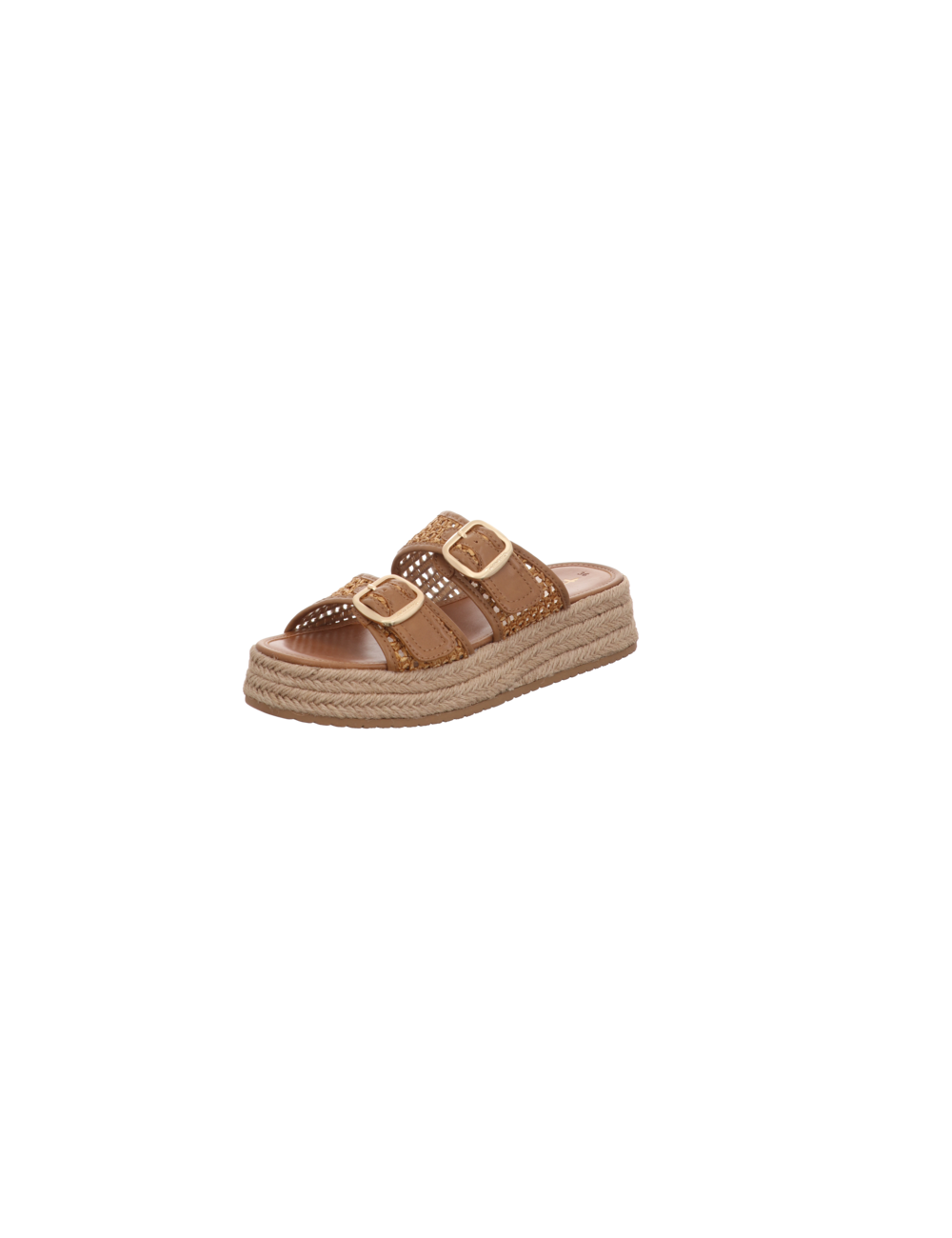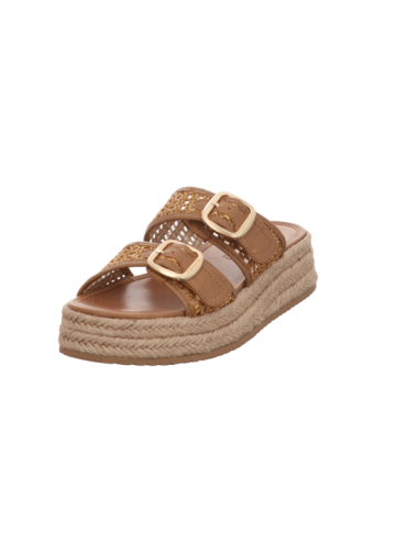 Pantoffel in cognacbraunen Textil mit Plateaugummisohle.