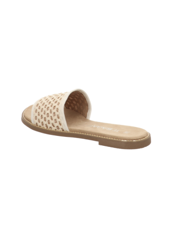 Pantoffel in beigen Textil mit Gummisohle.