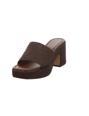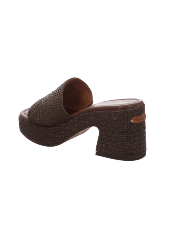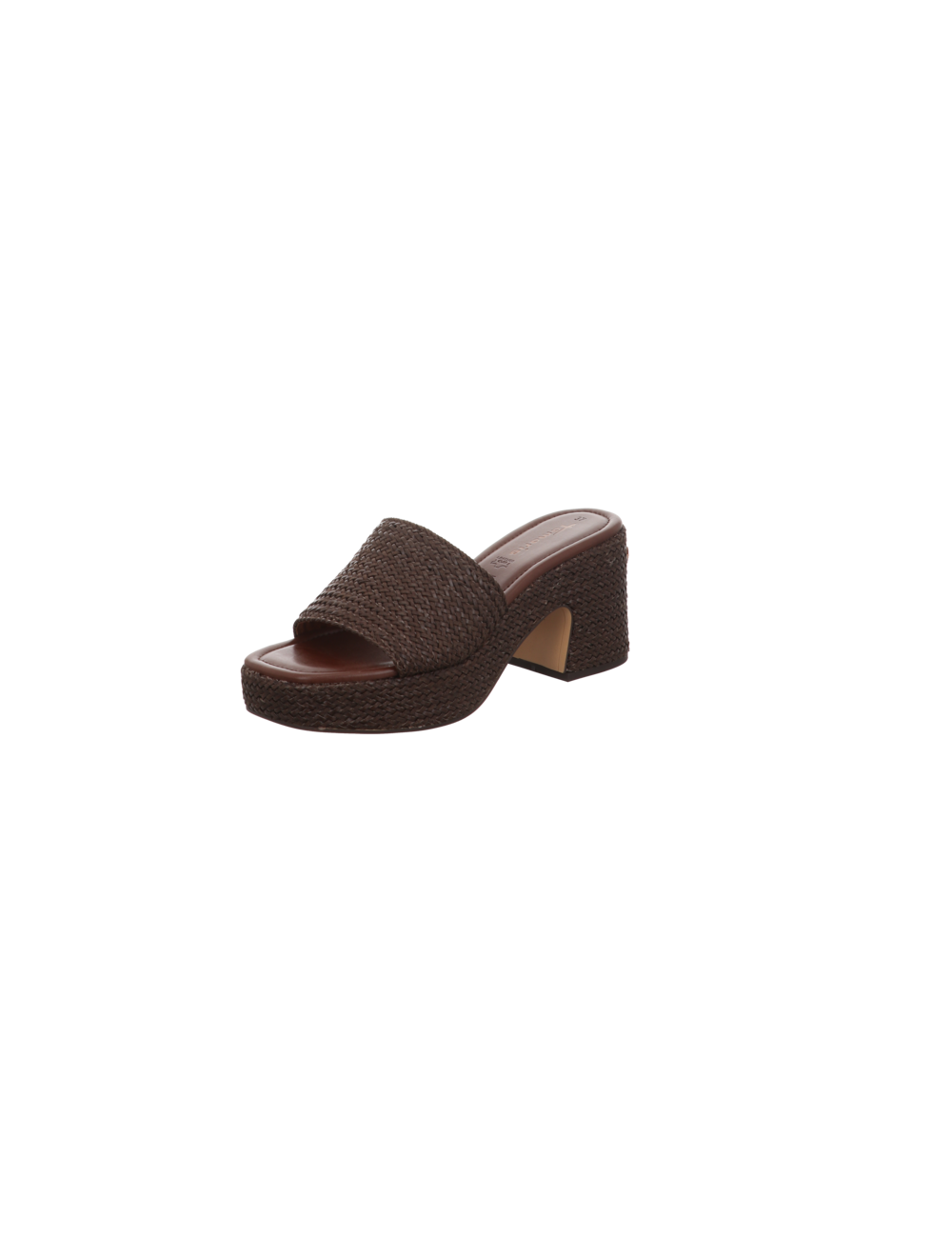 Plateaupantoffel in braunen Kunstleder mit einer Absatzhöhe von ca. 8 cm und Pu - Sohle.