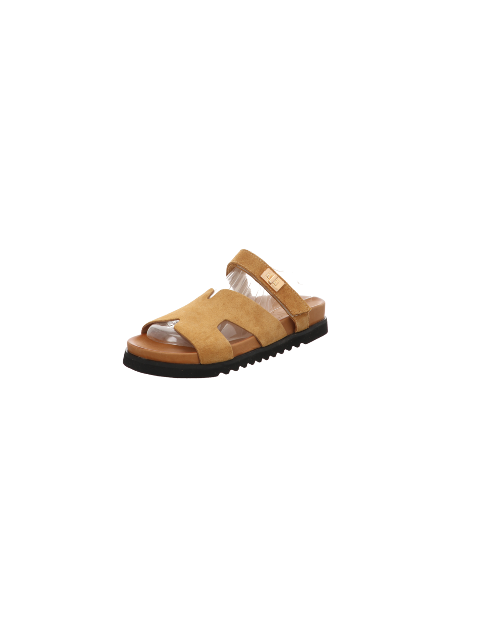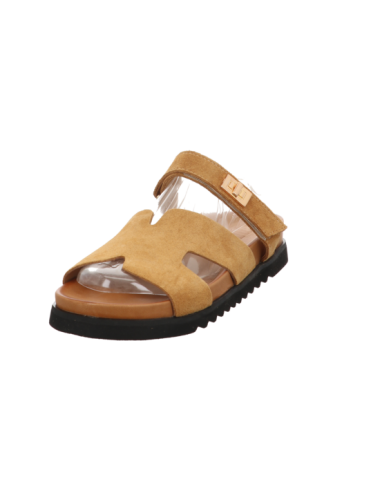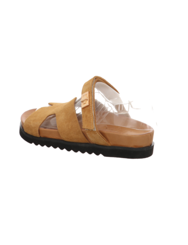 Pantoffel in cognacbraunen Rauhleder mit Plateausohle.