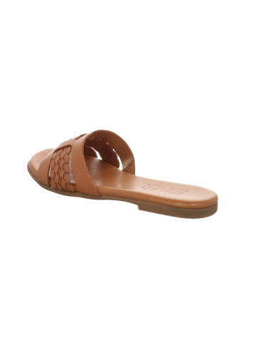 Pantoffel in cognacbraunen Glattleder mit Gummisohle.