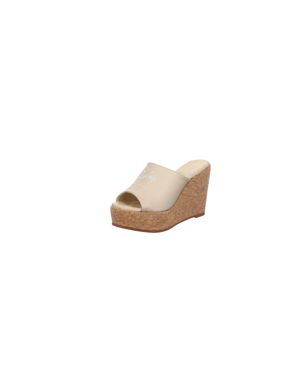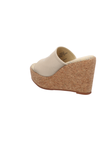Plateaupantoffel in goldenen Glattleder mit einer Absatzhöhe von ca. 10,5 cm und Pu - Sohle.