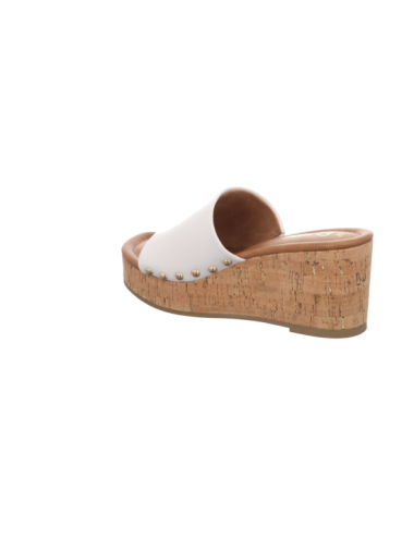 Keilpantoffel in weissen Kunstleder mit einer Absatzhöhe von ca. 7,5 cm und Gummisohle.