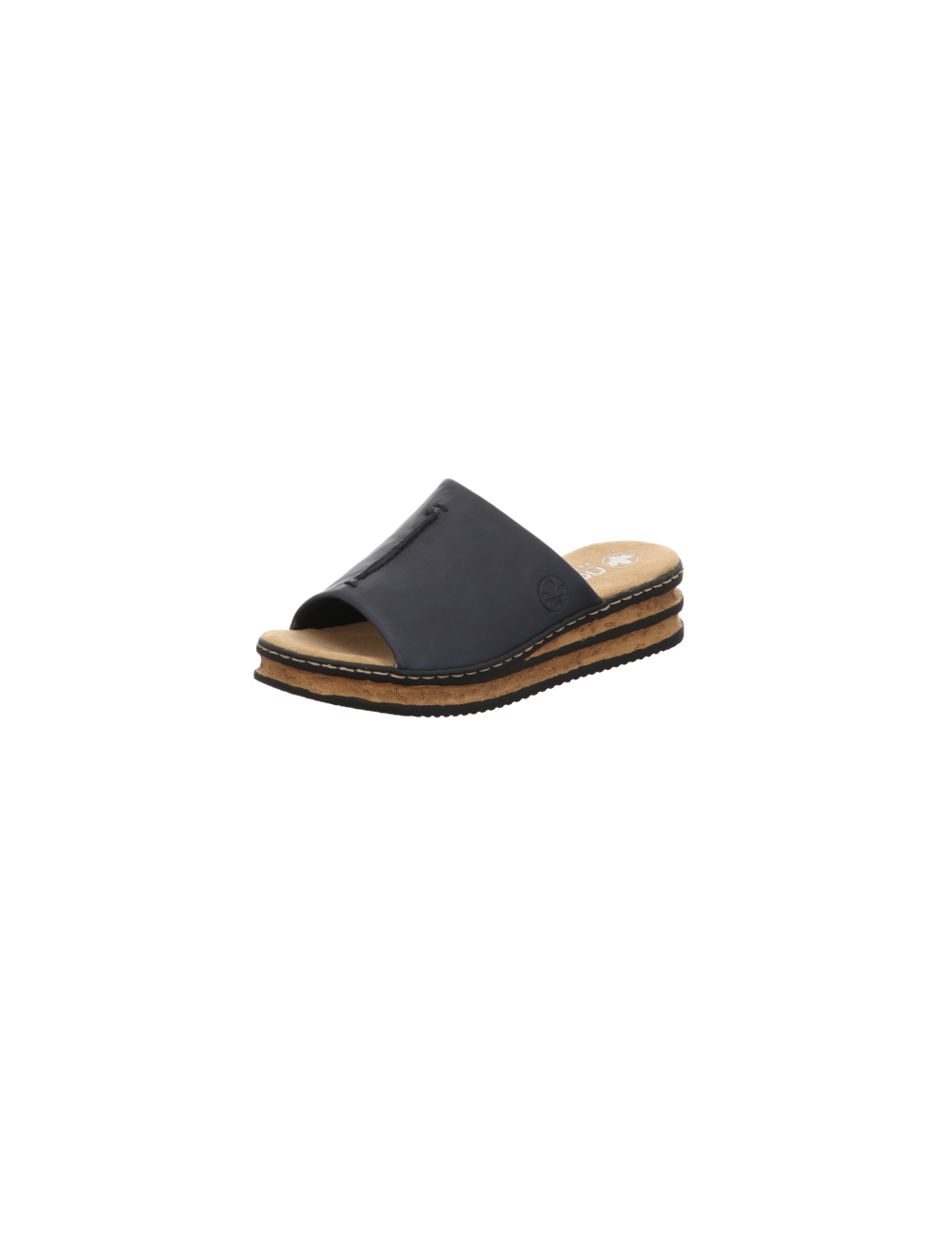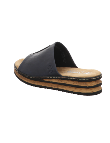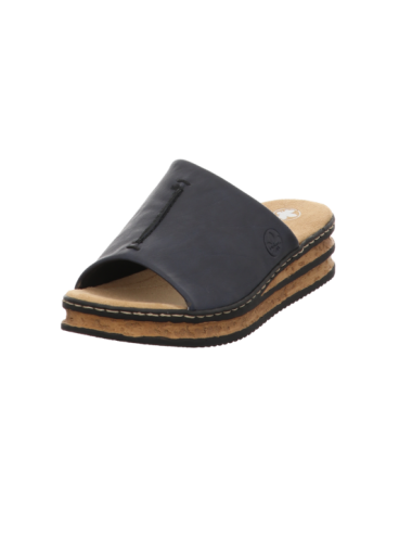 Pantoffel in blauer Glattlederoptik mit Pu - Sohle.