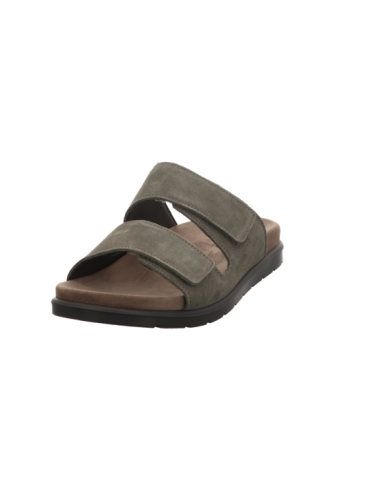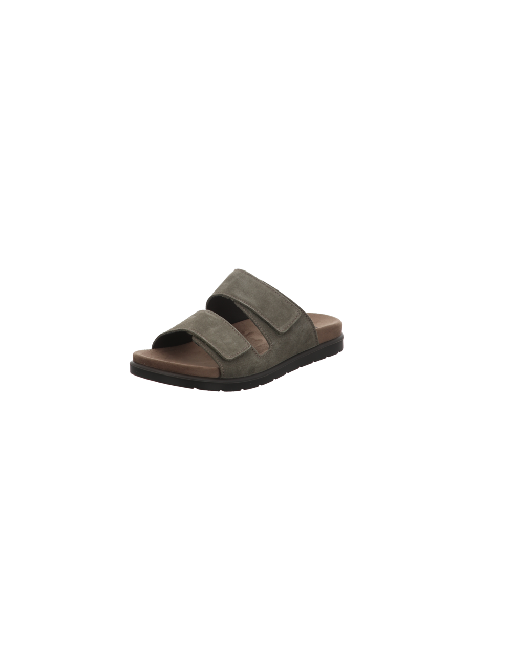 Pantoffel in grünen Rauhleder mit Gummisohle.