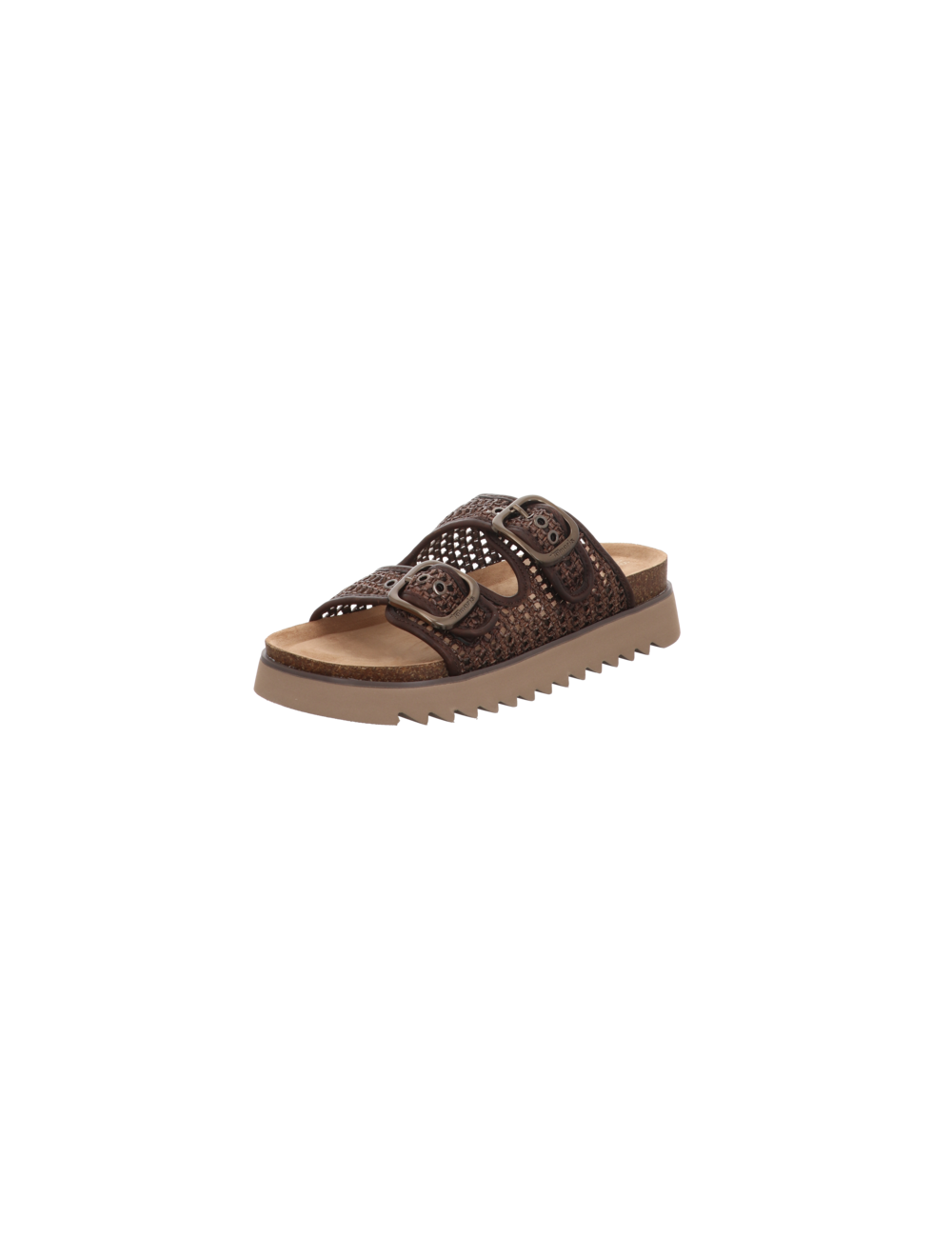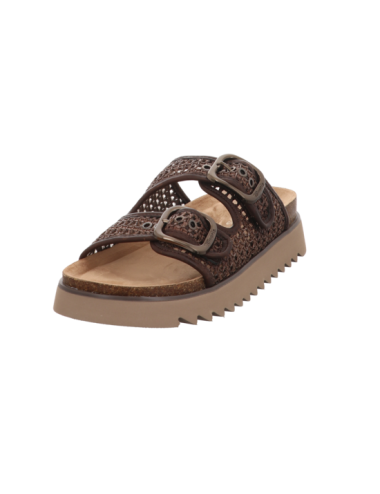 Pantoffel in braunen Textil mit Plateaugummisohle.