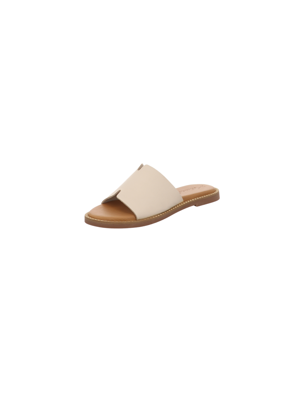 Pantolette in weißem Glattleder mit einer Gummisohle.