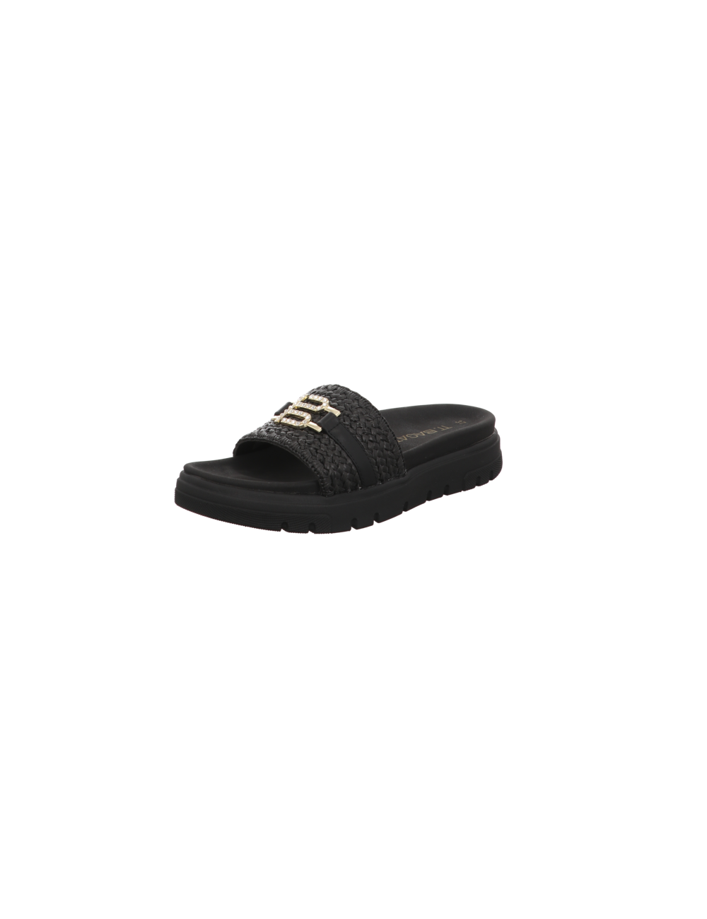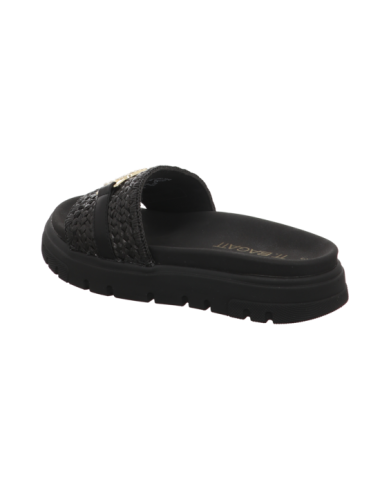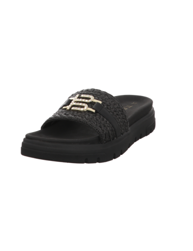 Pantoffel in schwarzen Textil mit Plateaugummisohle.