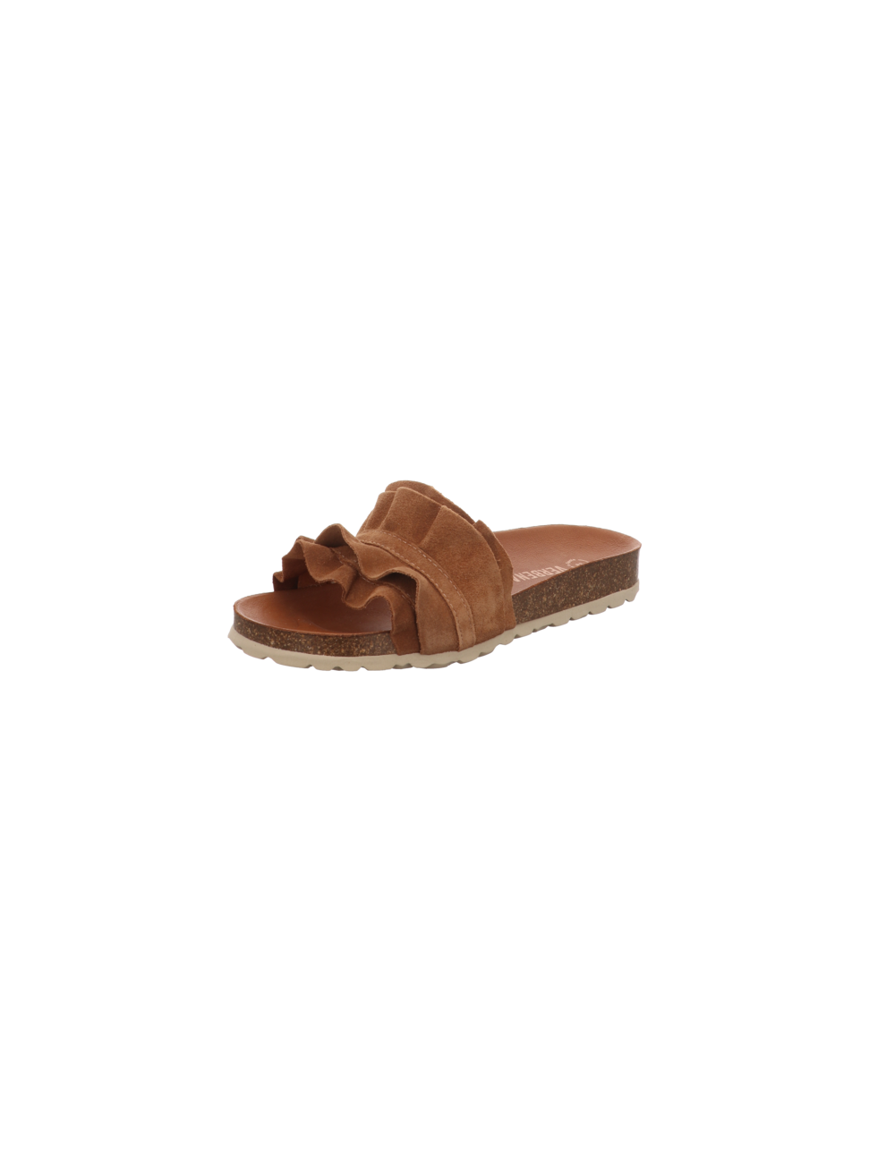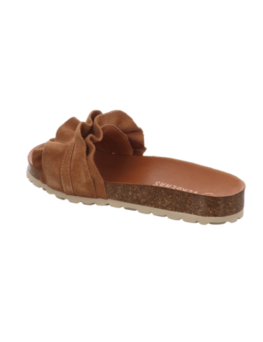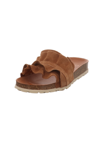 Pantoffel in cognacbraunen Rauhleder mit Pu - Sohle.