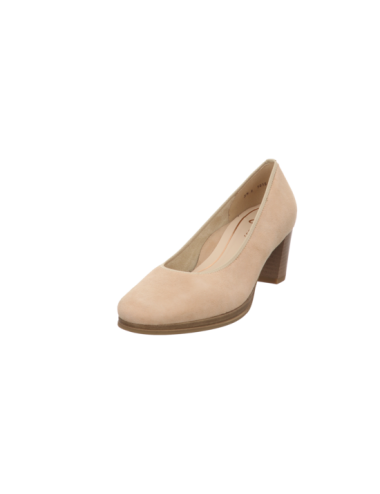 Plateaupumps in beigen Rauhleder mit einer Absatzhöhe von ca. 5,5 cm und Gummisohle.
