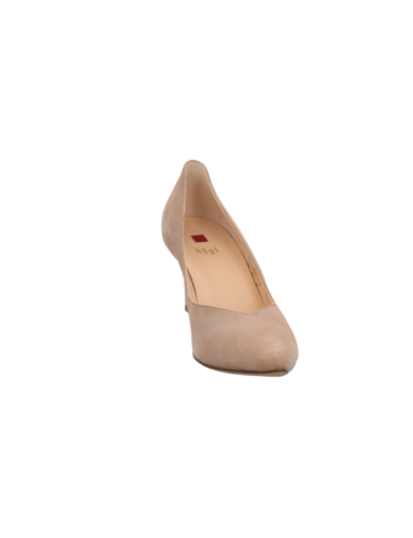 Pumps in beigen Rauhleder mit einer Absatzhöhe von ca. 6 cm und Gummisohle.