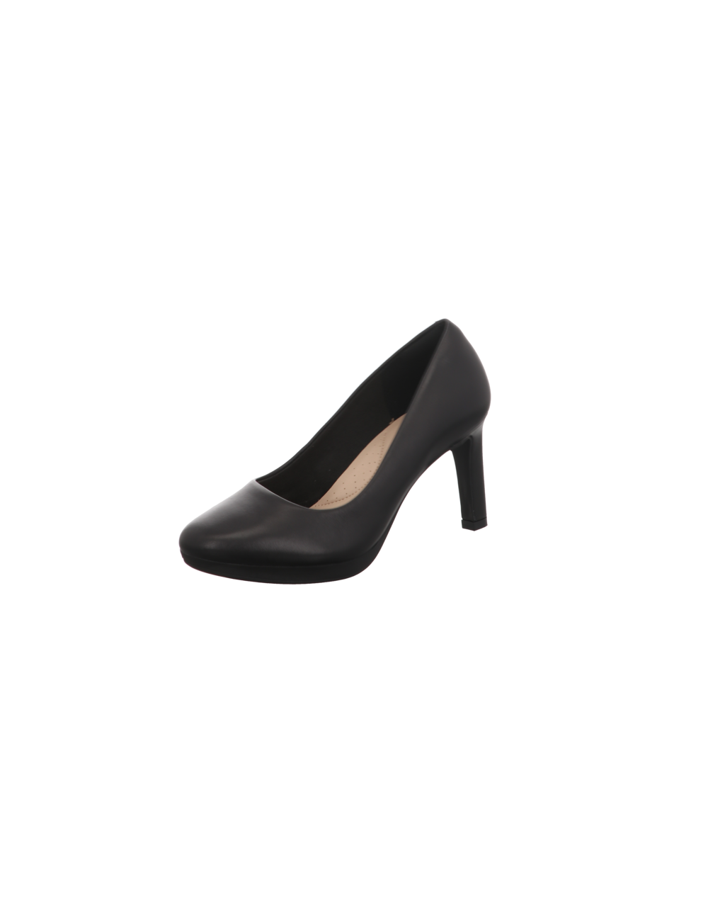 Plateaupumps in schwarzen Glattleder mit einer Absatzhöhe von ca. 8 cm und Gummisohle.