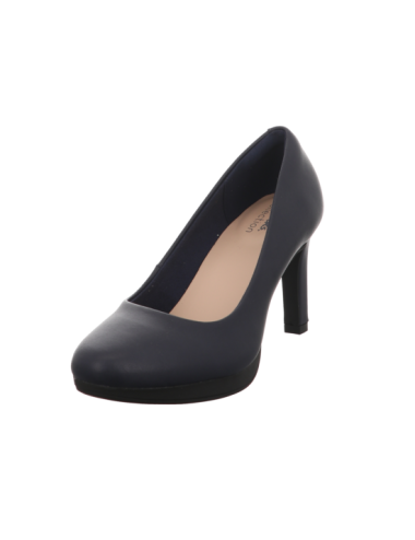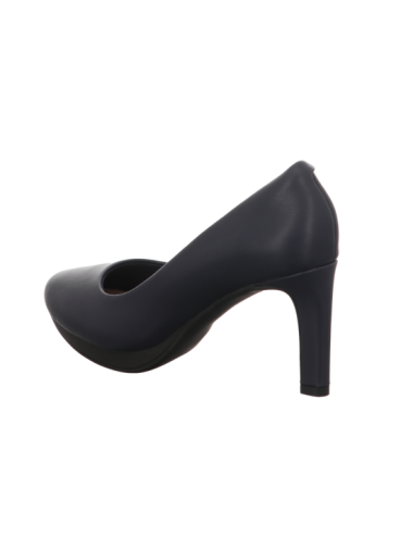 Plateaupumps in blauen Glattleder mit einer Absatzhöhe von ca. 7,5 cm und Gummisohle.