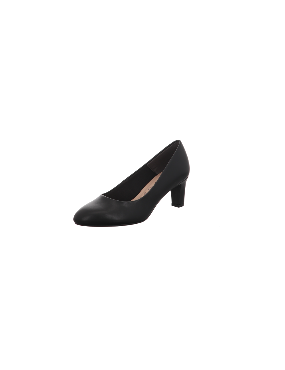 Pumps in schwarzer Glattlederoptik mit einer Absatzhöhe von ca. 5,5 cm und Pu - Sohle.