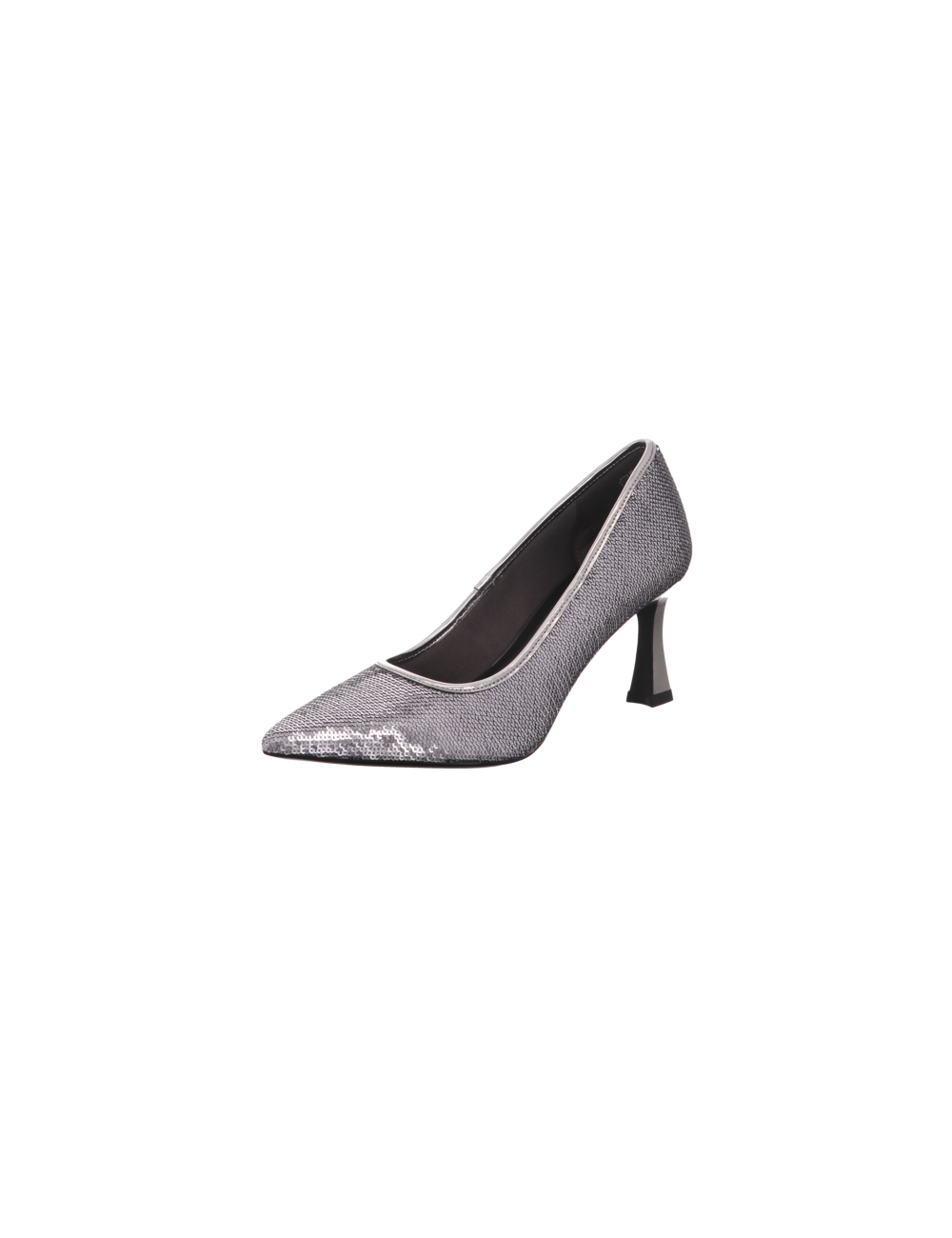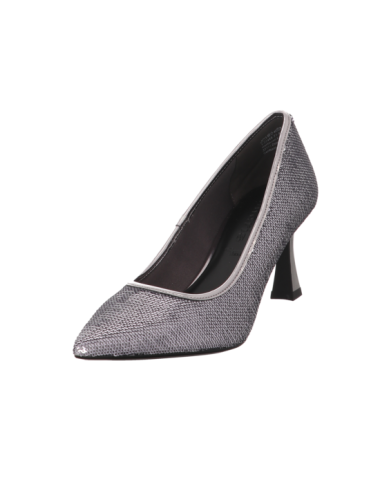 Pumps in silbernen Textil mit einer Absatzhöhe von ca. 6,5 cm und Gummisohle.