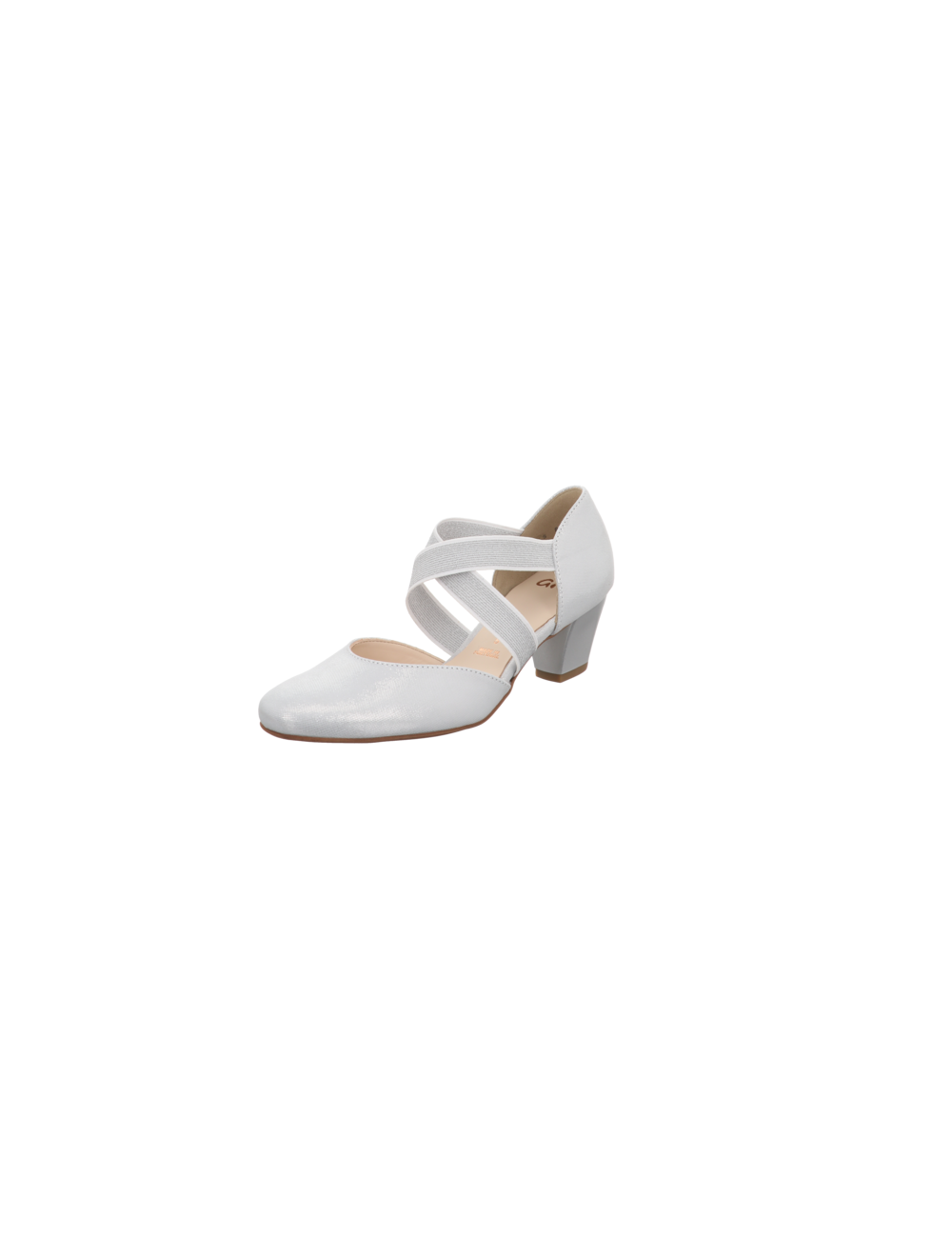 Pumps in weiss kombinierter Rauhlederoptik mit einer Absatzhöhe von ca. 5 cm und Pu - Sohle.
