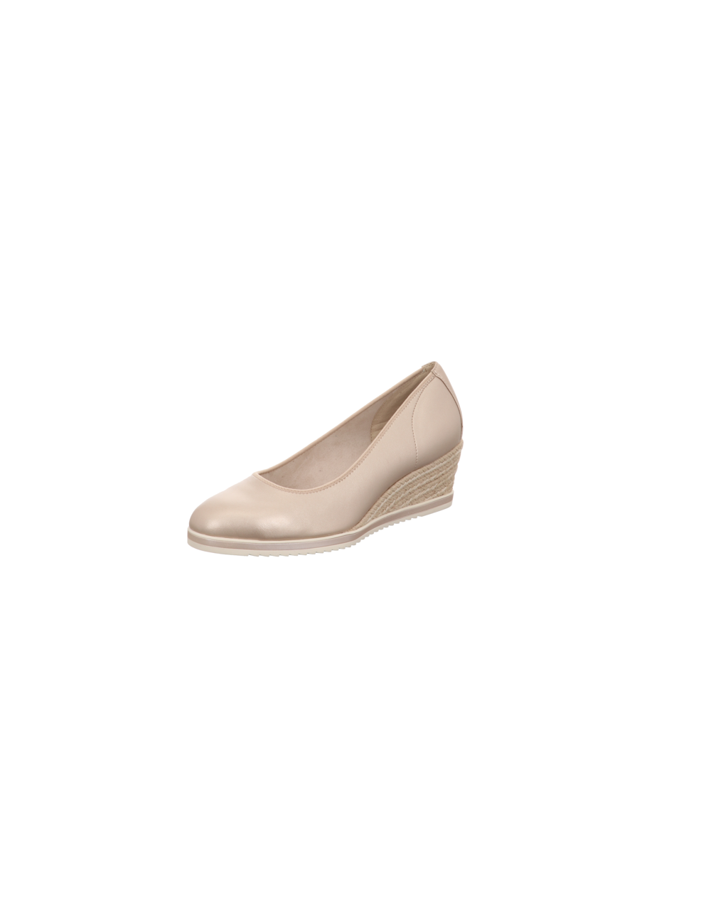 Keilpumps in goldener Glattlederoptik mit einer Absatzhöhe von ca. 5,5 cm und Gummisohle.