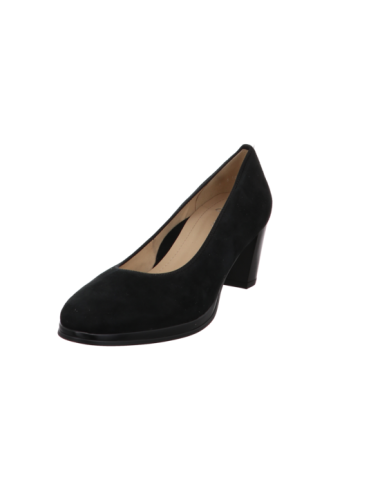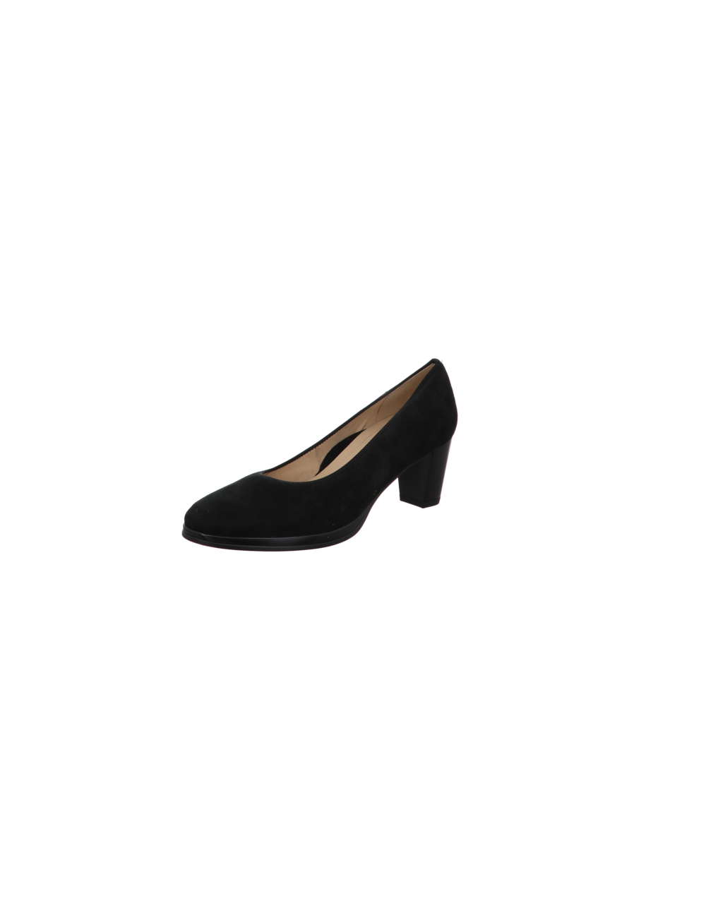Plateaupumps in schwarzen Rauhleder mit einer Absatzhöhe von ca. 5,5 cm und Gummisohle.