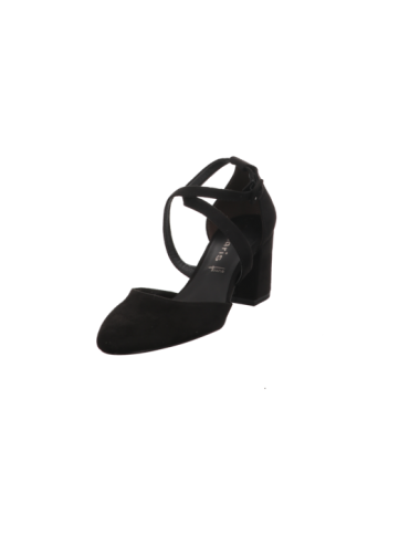 Pumps in schwarzer Rauhlederoptik mit einer Absatzhöhe von ca. 6,5 cm und Gummisohle.
