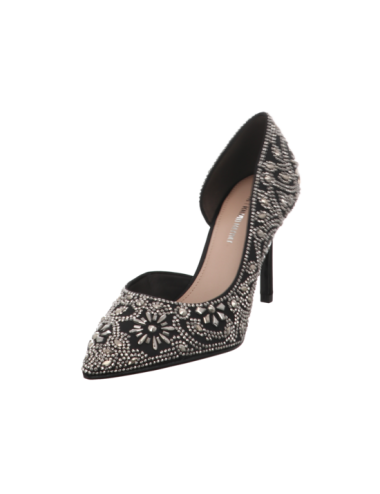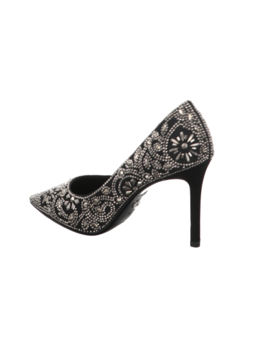 Pumps in schwarzen Textil mit einer Absatzhöhe von ca. 8,5 cm und Pu - Sohle.