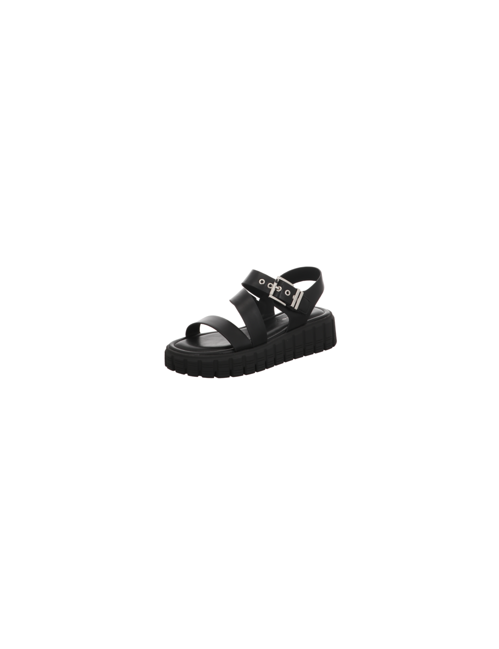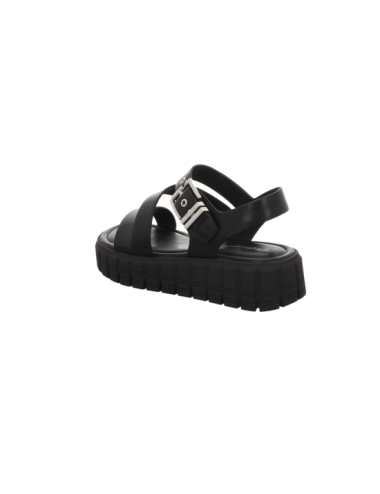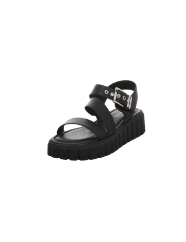Sandale in schwarzer Glattlederoptik mit Plateaugummisohle.