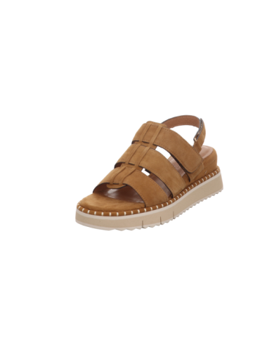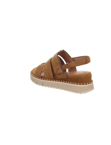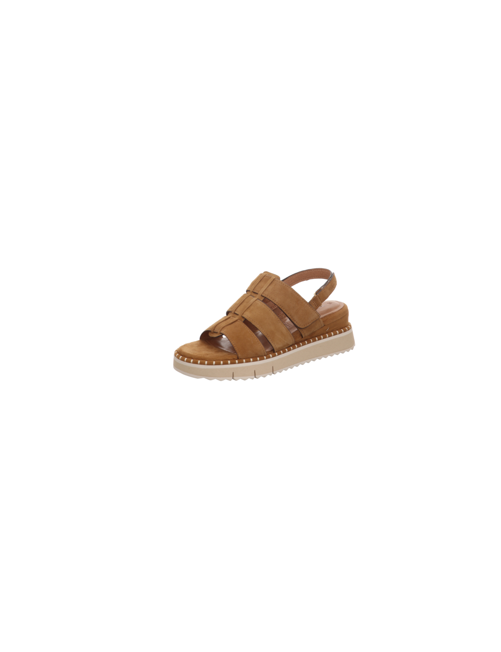 Sandale in cognacbraunen Rauhleder mit Plateaugummisohle.