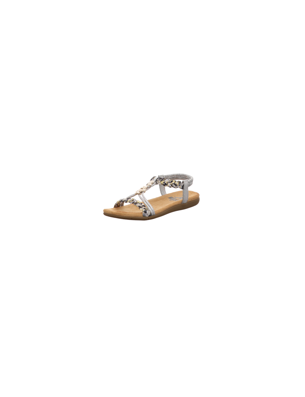 Sandale in silberner Glattlederoptik mit Gummisohle.