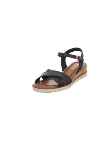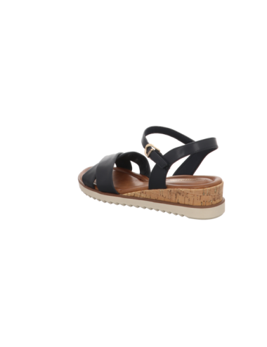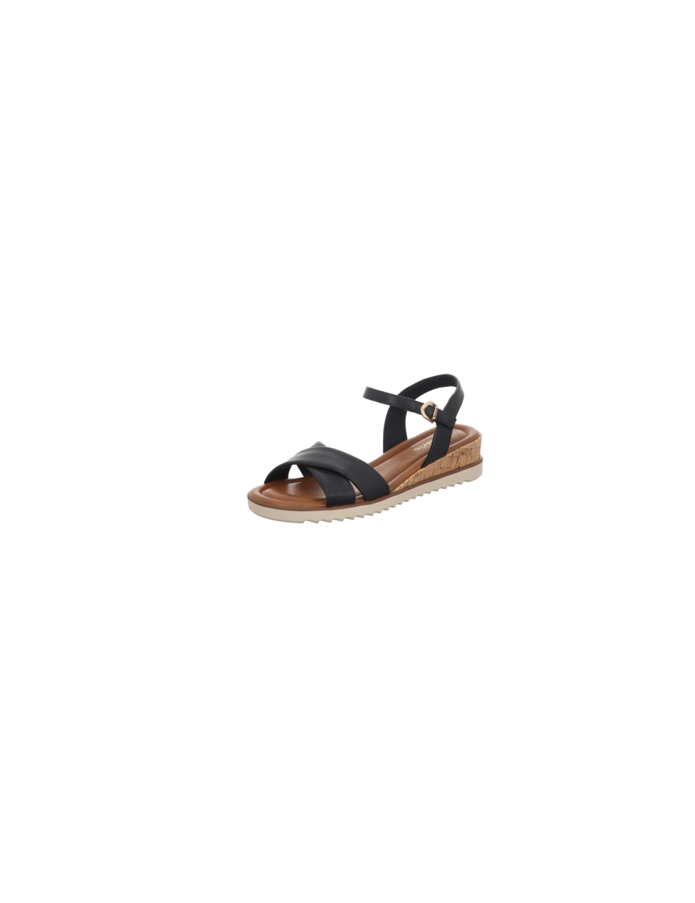 Keilsandale in blauen Kunstleder mit einer Absatzhöhe von ca. 4 cm und Gummisohle.