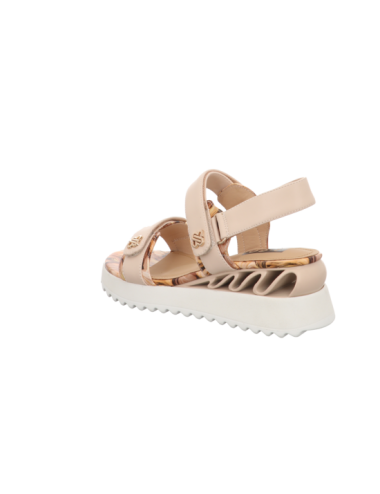 Keilsandale in beige kombinierten Glattleder mit einer Absatzhöhe von ca. 6 cm und Pu - Sohle.