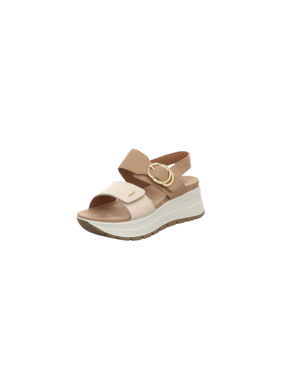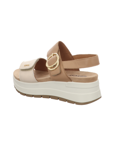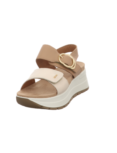 Sandale in beige kombinierten Glattleder mit Plateaugummisohle.