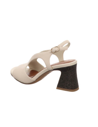 Sandale in beigen Glattleder mit einer Absatzhöhe von ca. 7,5 cm und Pu - Sohle.