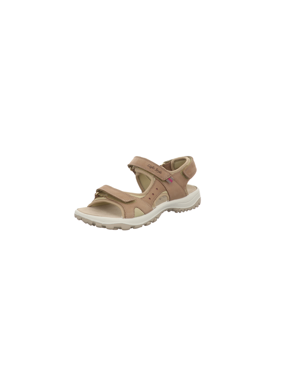 Trekkingsandale in beigen Rauhleder mit Gummisohle.