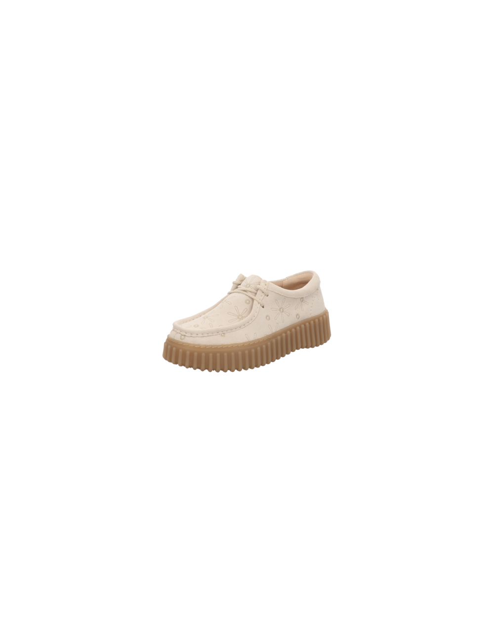 Schnürer in beigen Rauhleder mit Gummisohle.