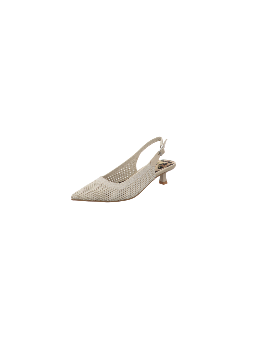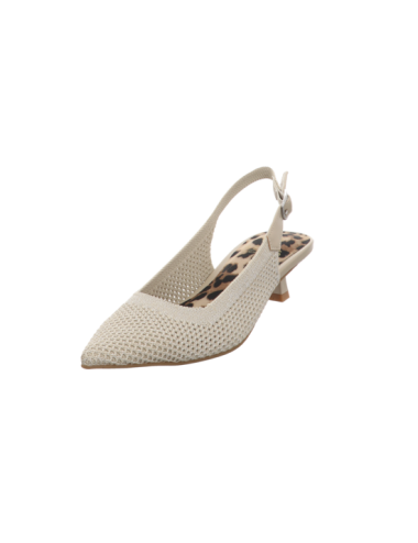 Sling in beigen Textil mit einer Absatzhöhe von ca. 4,5 cm und Gummisohle.