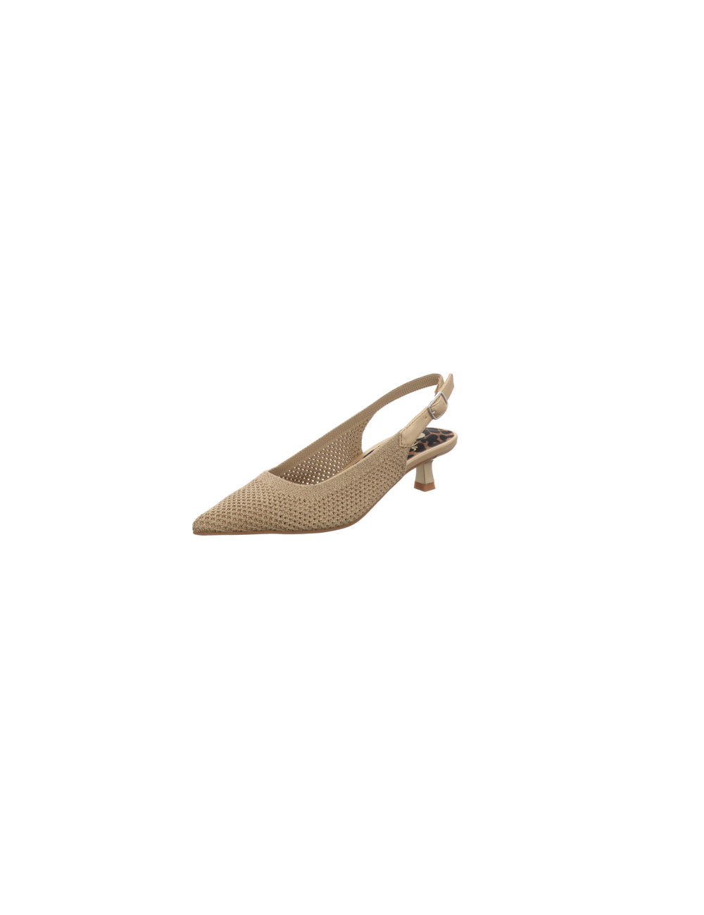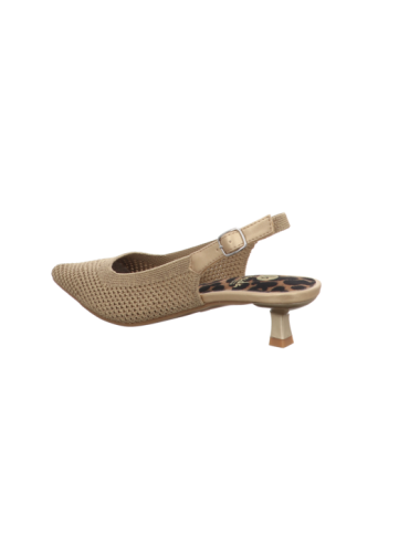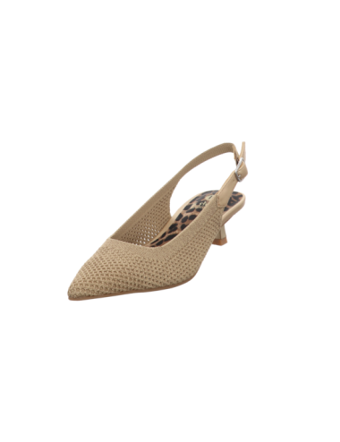 Sling in goldenen Textil mit einer Absatzhöhe von ca. 4,5 cm und Gummisohle.