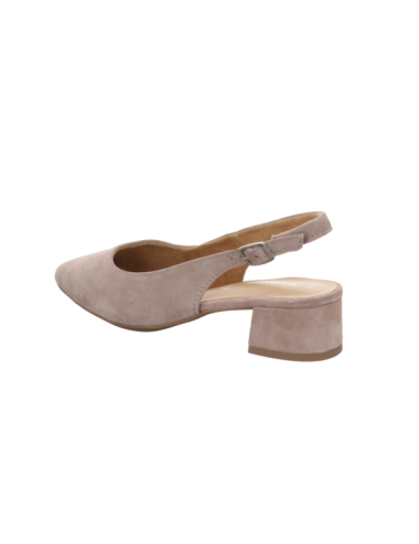 Sling in beigen Rauhleder mit einer Absatzhöhe von ca. 4 cm und Gummisohle.