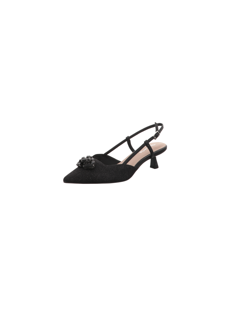 Sling in schwarzen Textil mit einer Absatzhöhe von ca. 4,5 cm und Pu - Sohle.