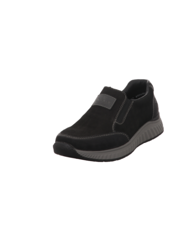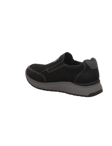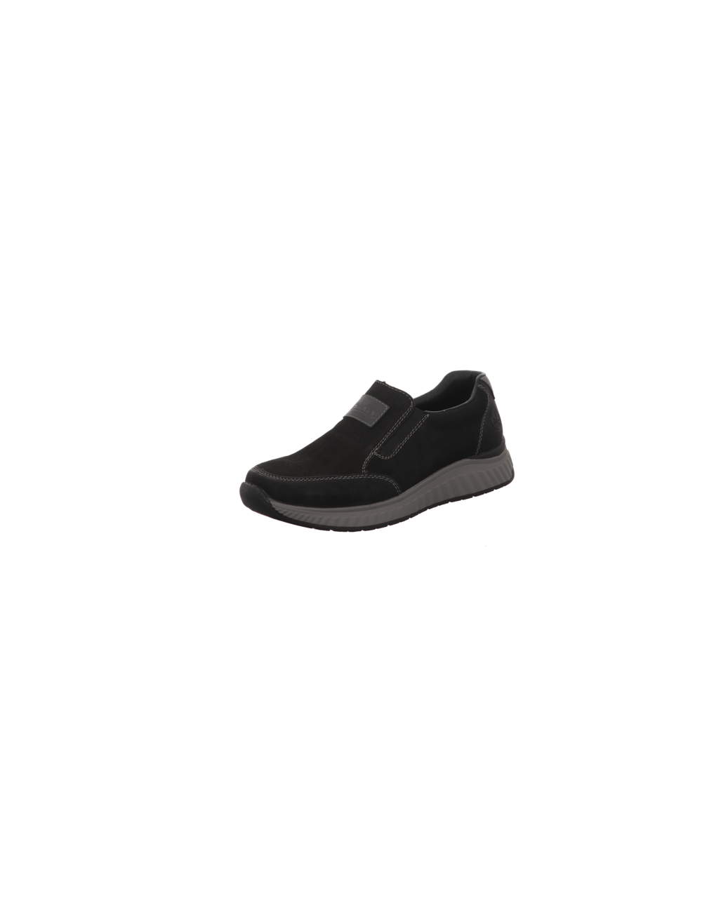 Slipper in schwarzen Rauhleder mit Gummisohle.